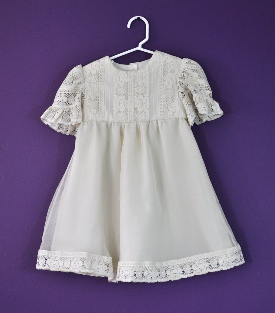 Tawny Beckmann sent us her wedding dress to have a christening gown and a toddler dress made from it for her grandchildren. Here is what she had to say about it: